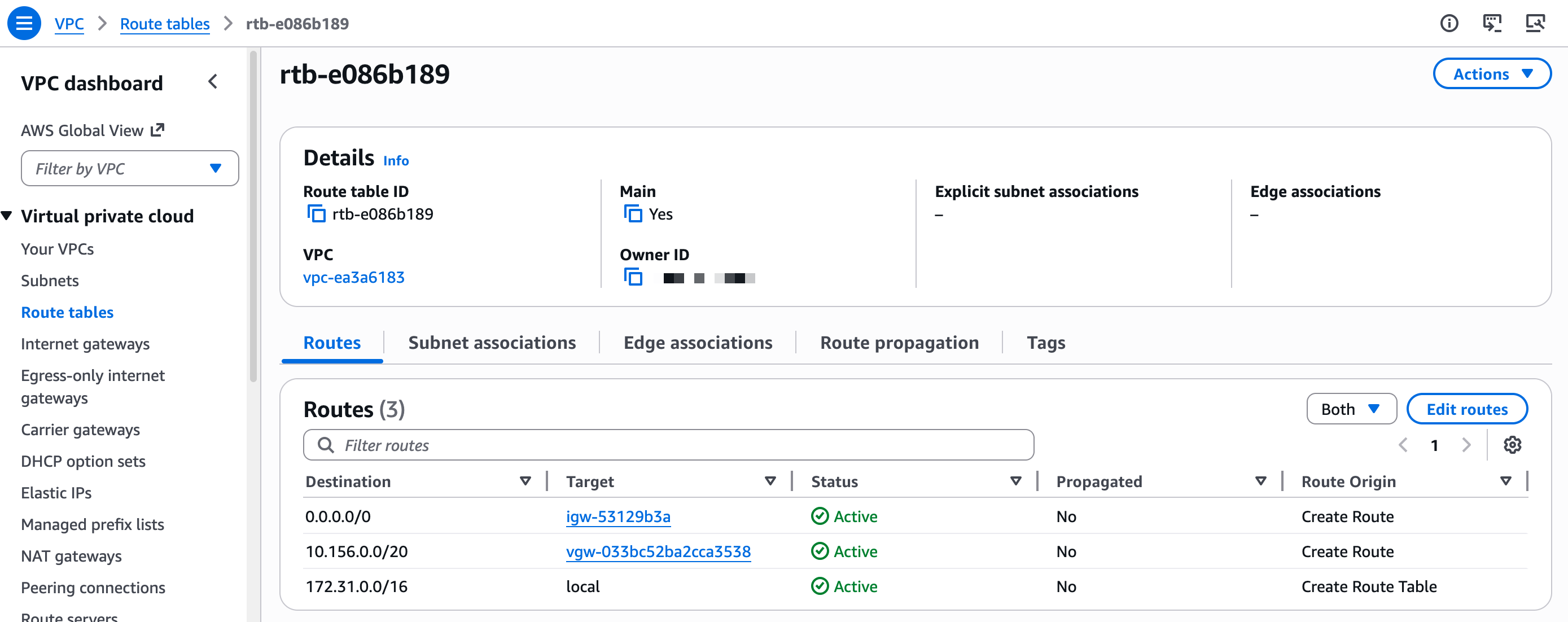 You don’t need to configure the network routing on the GCP side. On AWS, there is a final step: add a route entry in your VPC Route tables to send all traffic to the GCP IP address range through the Virtual Gateway.